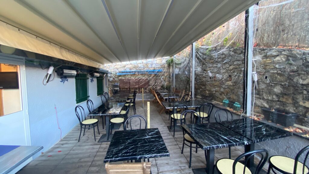 Il locale è diviso in tre parti: terrazzo, parte interna e la veranda.